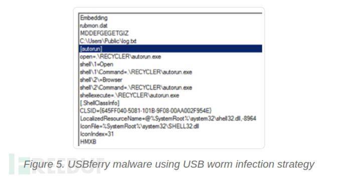 該組織通過USB蠕蟲感染策略,將USB將惡意軟件安裝到物理隔離主機(jī)中來實(shí)現(xiàn)感染。