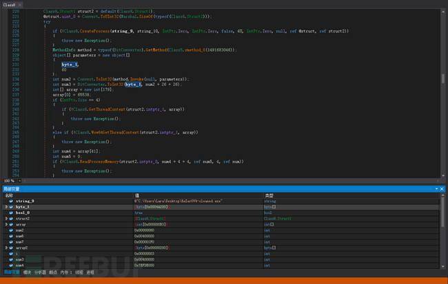 其采用進程鏤空的方式將惡意代碼(Byte_1中所存儲的)寫入到新的子進程中運行: