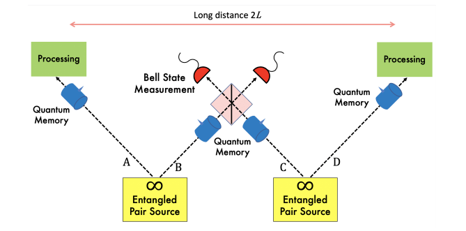 使用量子中繼器的遠(yuǎn)程糾纏分布,允許小型和大規(guī)模量子處理器之間基于糾纏的協(xié)議。