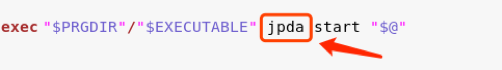 修改完成后,在startup.sh文件中添加jpda,如下所示: