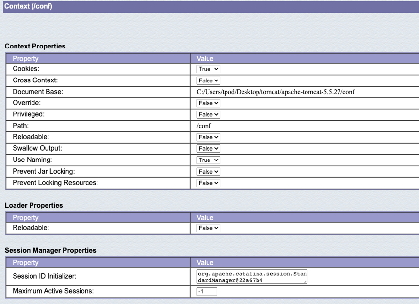 這些樣例中的session樣例(/examples/servlets/servlet/SessionExample)允許用戶對session進行操縱,因為session是全局通用的,所以用戶可以通過操縱session獲取管理員權限,存在一定的安全風險,不過這種基本上只有在一些比較老的不安全系統(tǒng)中才有可能出現(xiàn),利用條件比較苛刻。