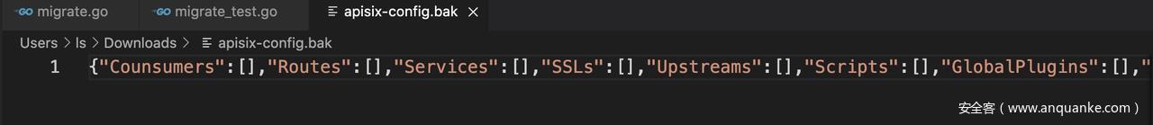 下載到配置文件 apisix-config.bak