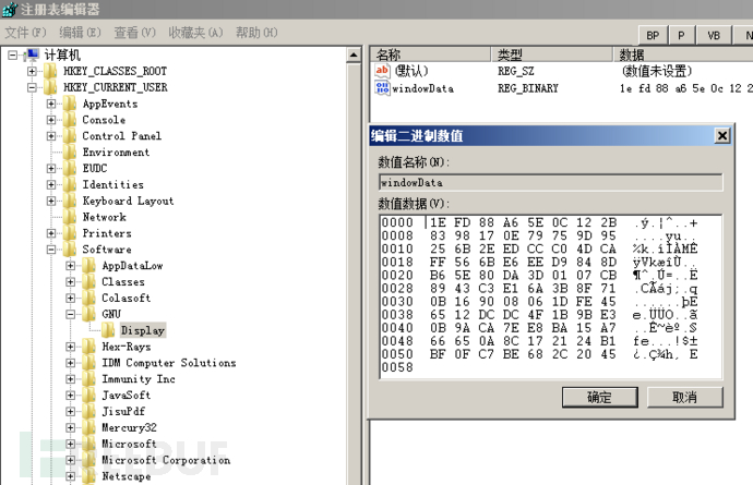 1.首先生成AES密鑰,存放在注冊表HKEY_CURRENT_USER\Software\GNU\Display -> windowData中: