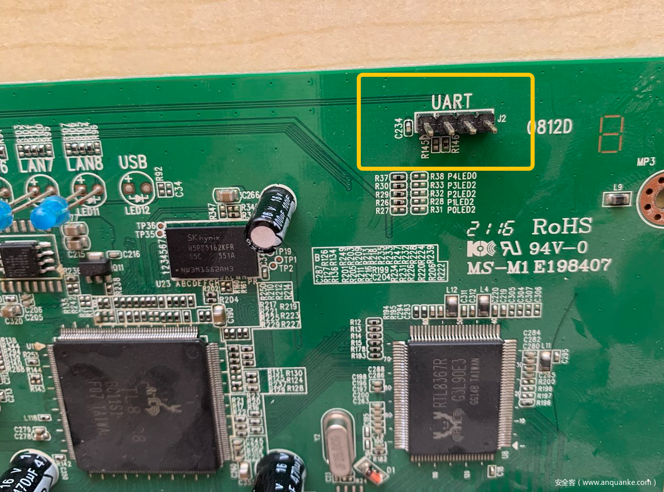 UART(Universal Asynchronous Receiver/Transmitter)接口是訪問設(shè)備最為常見的方式,屬于異步串行通信協(xié)議接口。廠商在部署設(shè)備時(shí)可以通過UART接口進(jìn)行設(shè)備診斷、日志記錄等操作,所以在研究終端設(shè)備時(shí),我們需要重點(diǎn)關(guān)注設(shè)備的UART接口。