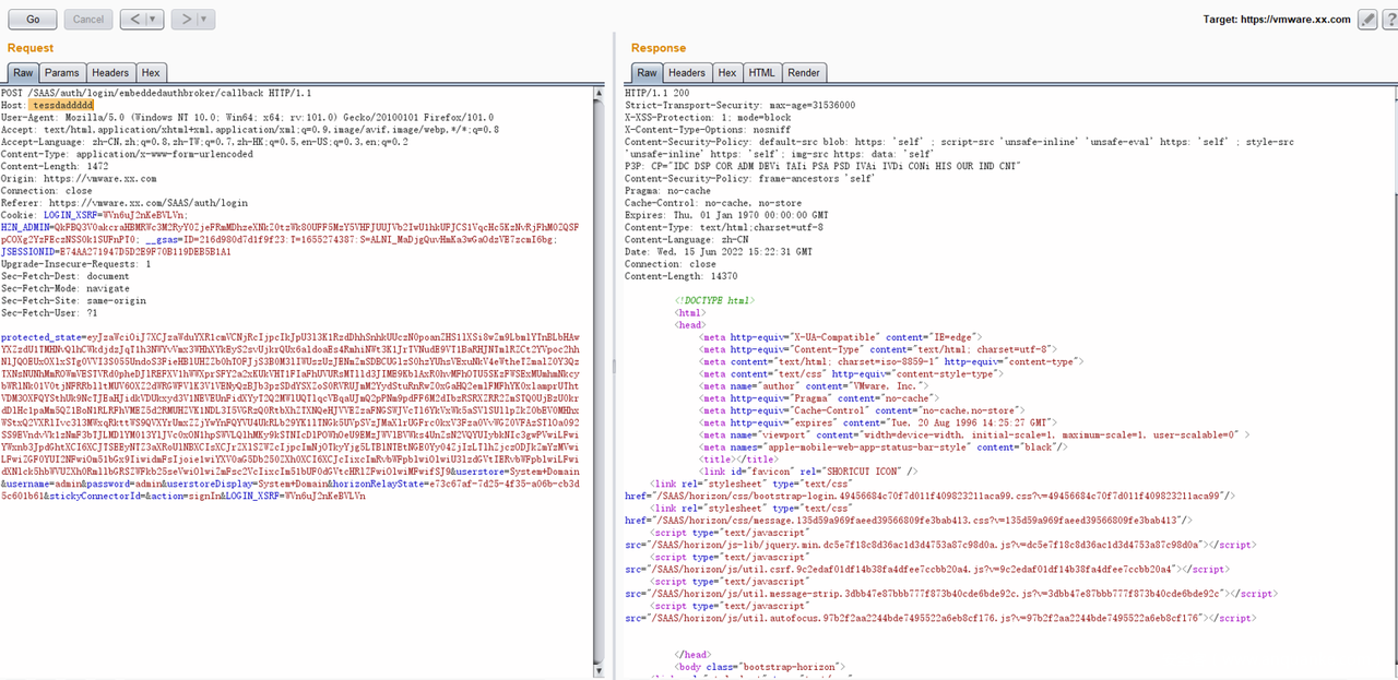 抓取登陸數(shù)據(jù)包,修改Host頭為tessdadddd后進(jìn)行重放。