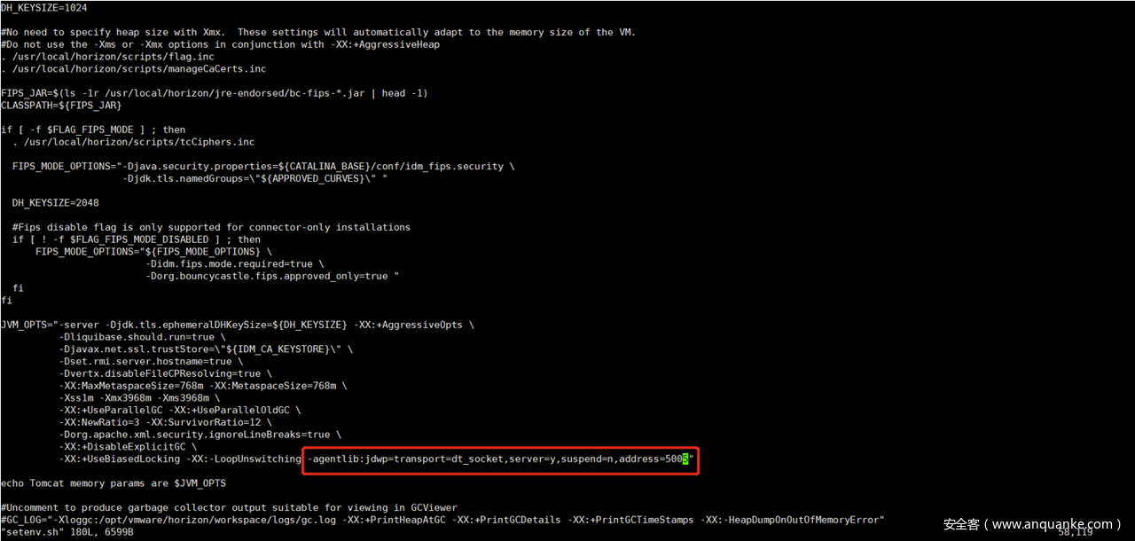 將遠(yuǎn)程調(diào)試命令寫入/opt/vmware/horizon/workspace/bin/setenv.sh。