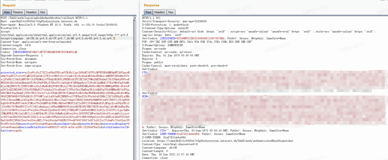 修改HOST為偽造的http服務(wù)器地址,成功繞過認(rèn)證并獲取有效cookie。