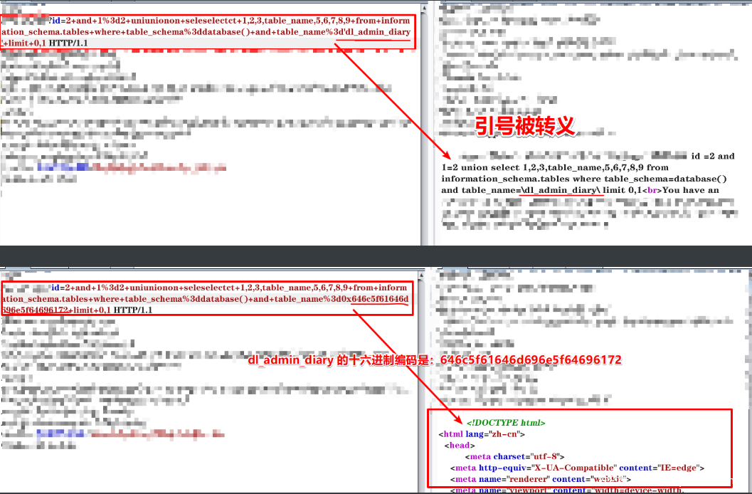 若單引號(hào)被攔截,則使用雙引號(hào),若都被攔截,就嘗試使用hex六進(jìn)制編碼,也可以考慮寬字節(jié)注入繞過(guò)