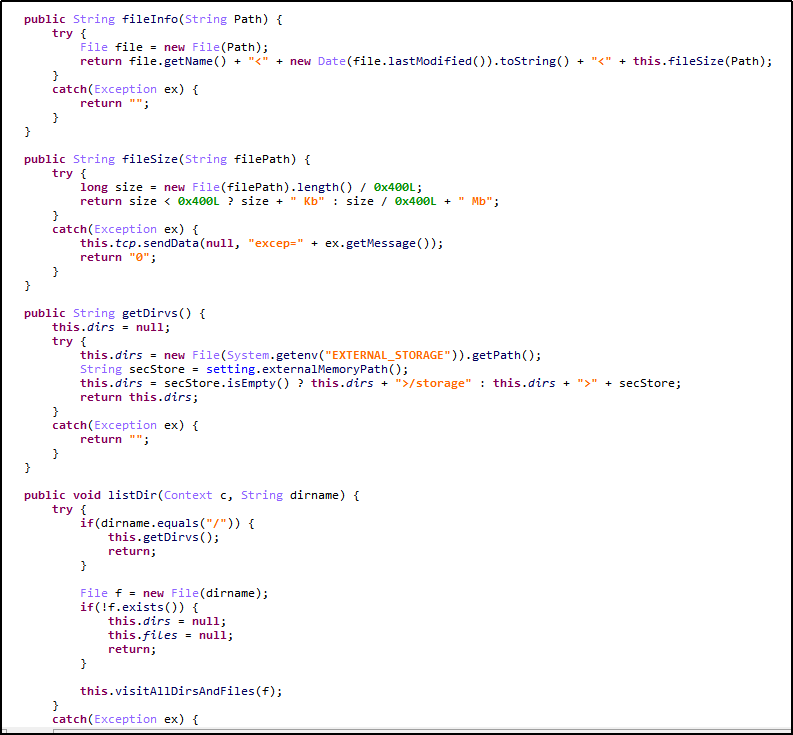 監(jiān)聽功能是手機間諜軟件的必有的模塊,間諜軟件可以通過實時的通話記錄、通訊錄、存儲文件、GPS和短信收發(fā)等監(jiān)聽,監(jiān)視用戶的行蹤,通信信息和存儲的隱私內(nèi)容。APT組織的這種監(jiān)聽的手段對于政府的攻擊是致命,可以想象到在戰(zhàn)爭中,APT組織對他國軍政要員的監(jiān)聽,獲取和販賣這些隱私信息。