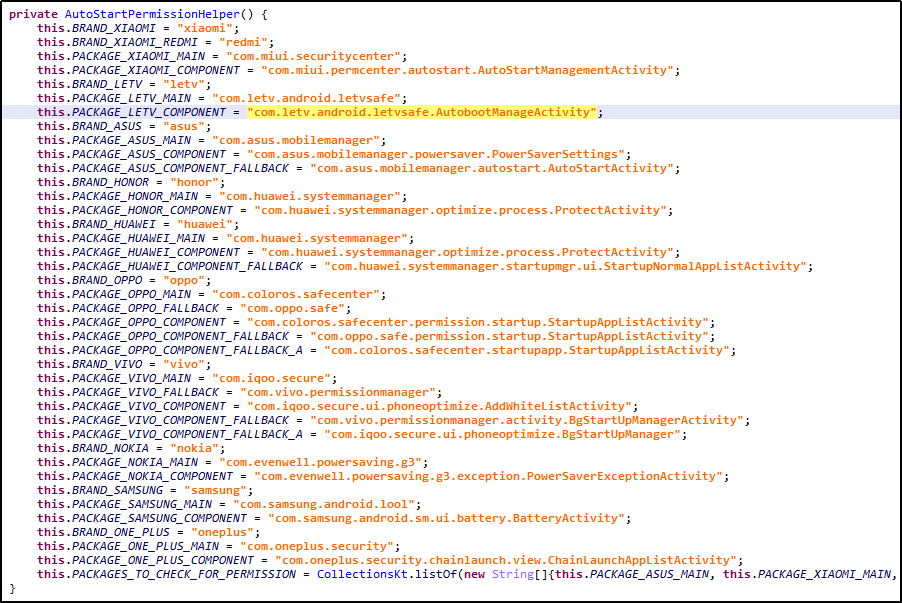 可以從靜態(tài)分析中看出,這個提權的方法適配了國內(nèi)外多款手機廠商,其中包含華碩、小米、樂視、榮耀、華為、oppo、vivo、諾基亞和三星手機。
