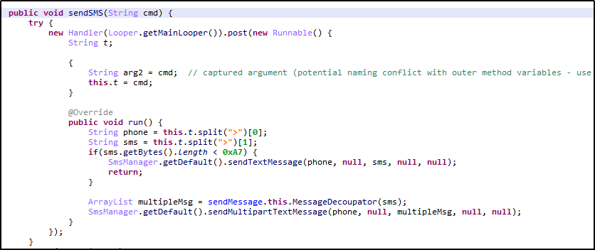 同樣間諜軟件也具備了發(fā)送短信的功能。