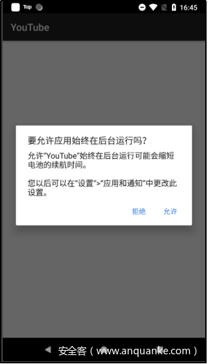 在安裝應用后,app還提示用戶允許應用始終在后臺運行。
