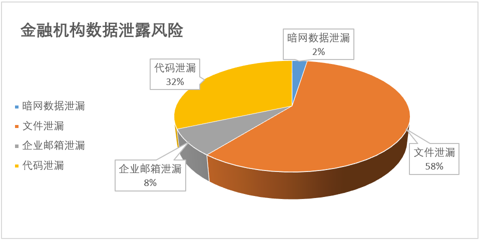 敏感數(shù)據(jù)泄露事件同樣是金融機(jī)構(gòu)及其監(jiān)管單位重點(diǎn)關(guān)注的高危安全事件之一。對于金融機(jī)構(gòu)而言,出于其特殊的行業(yè)背景,數(shù)據(jù)敏感度高、黑市變現(xiàn)價(jià)值高的特點(diǎn)均會促使惡意數(shù)據(jù)泄露事件的發(fā)生,如竊密類的網(wǎng)絡(luò)攻擊活動、內(nèi)部人員的蓄意為之等。除此之外,機(jī)構(gòu)內(nèi)部人員在使用網(wǎng)絡(luò)云盤、文庫、代碼倉庫等網(wǎng)絡(luò)平臺進(jìn)行數(shù)據(jù)轉(zhuǎn)移、存儲時(shí),經(jīng)常會因?yàn)閭(gè)人疏忽或未做數(shù)據(jù)脫敏處理等原因誤將機(jī)構(gòu)內(nèi)部敏感數(shù)據(jù)泄露到公網(wǎng)。 近幾年來,互聯(lián)網(wǎng)曝光的金融機(jī)構(gòu)敏感數(shù)據(jù)泄露事件層出不窮。我們對本次調(diào)研的金融機(jī)構(gòu)公網(wǎng)數(shù)據(jù)泄露情況統(tǒng)計(jì)如下,其中最為常見的是文件泄露事件,占據(jù)58%,其次為代碼泄露事件,占據(jù)32%,最后為郵箱泄露事件和暗網(wǎng)數(shù)據(jù)泄露事件。對于文件泄露事件而言,其一般為企業(yè)內(nèi)部人員操作不當(dāng)而泄露出的內(nèi)部會議文件、通知文件、培訓(xùn)內(nèi)容、工作模板等等;代碼泄露多為通過gitlab、gitee、github等平臺流出,此類事件跟程序員依賴github等平臺的個(gè)人習(xí)慣有很大關(guān)系,金融機(jī)構(gòu)核心業(yè)務(wù)系統(tǒng)代碼泄露一般會帶來非常長遠(yuǎn)的風(fēng)險(xiǎn)隱患;占比最小的暗網(wǎng)數(shù)據(jù)泄露事件一般跟蓄謀的犯罪事件直接相關(guān)。