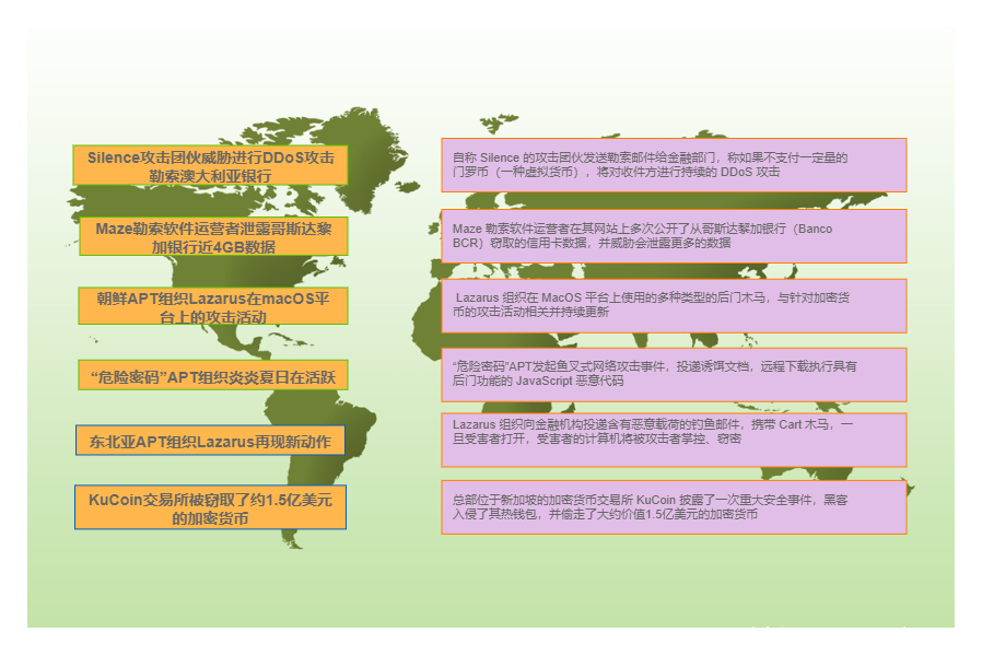 區(qū)別與傳統(tǒng)APT組織的政治間諜獨(dú)特屬性,“危險(xiǎn)密碼”APT組織的攻擊目標(biāo)早已不再局限于政府機(jī)構(gòu)了,而是偏向于直接攻擊金融機(jī)構(gòu)竊取錢財(cái)。除了臭名昭著的Lazarus APT組織,F(xiàn)IN7、Carbanak等APT組織均是如此。面對APT類的高級定向攻擊活動,傳統(tǒng)安全防御系統(tǒng)能力多數(shù)情況下會大打折扣,如何應(yīng)對未知的高強(qiáng)度定制化攻擊活動同樣是金融機(jī)構(gòu)需要長期思考的難題。