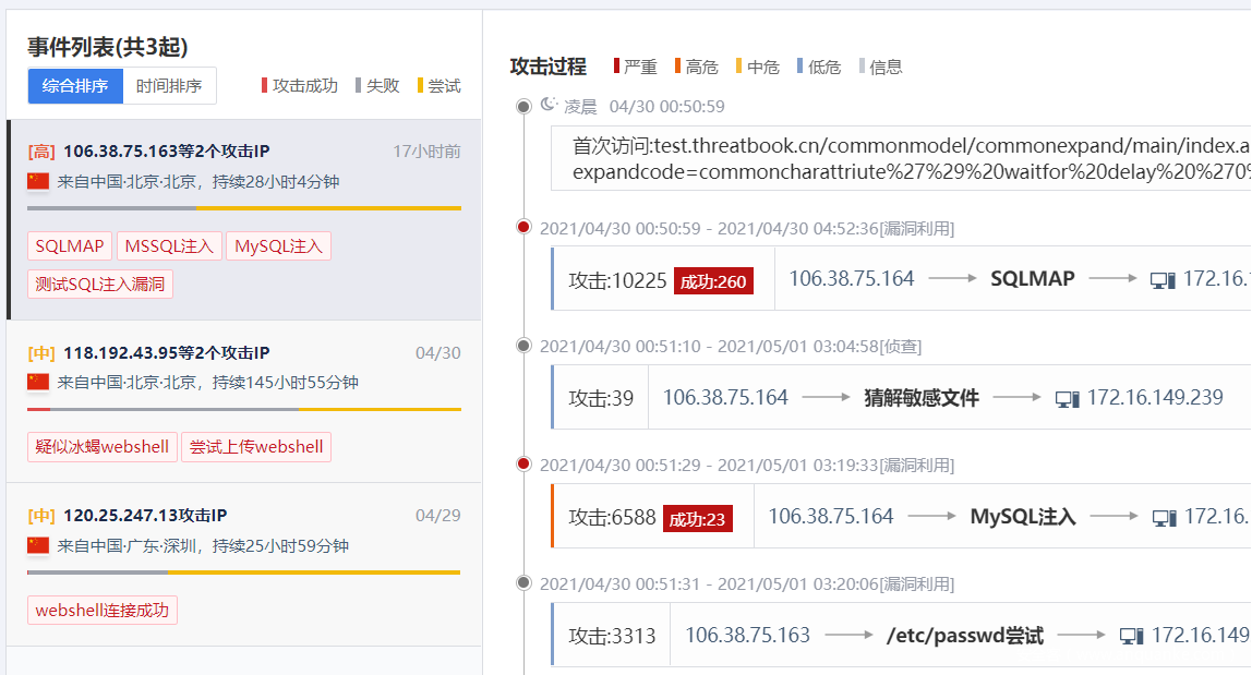 基于甲方安全運(yùn)營的角度考慮,除了關(guān)注互聯(lián)網(wǎng)側(cè)的整體威脅態(tài)勢,內(nèi)部失陷資產(chǎn)的處理排查也是當(dāng)務(wù)之急,失陷背后的入侵通道即是最真實(shí)可靠的安全缺口。對于失陷機(jī)器的精準(zhǔn)檢測同樣也是威脅情報(bào)類檢測產(chǎn)品最直觀的能力體現(xiàn)。
