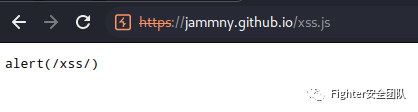 5、本次payload構(gòu)造選擇就使用<script>,先在自己的github.io頁面上新建一個(gè)xss.js文件,用于src外部引用,內(nèi)容為:alert(/xss/)。