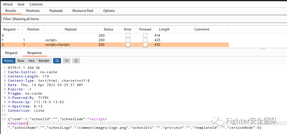 3、通過fuzz,可以看到<script>完整的標(biāo)簽是能夠被使用的。