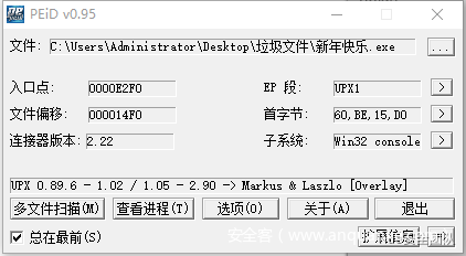 這幾天我想學習一點逆向的知識,但苦于入門較難,教學視頻廢話太多,也不想看,就去刷ctf題,不會的就看wp,不得不說ctf真的是居家旅行,殺人滅口必備良藥啊。這不,在做逆向題的時候就發(fā)現(xiàn)有個軟件用ida打開沒啥函數(shù),查看wp才知道被加殼了,照著wp用PEID查殼,發(fā)現(xiàn)是upx的,人家用od演示了怎么手動去殼,但我看的云里霧里的,各種名詞她也沒有解釋,例如oep,popad啥的,我就只能去查,而且我的od還跟他的不一樣,最后我通過x64dbg去掉殼,去殼的過程使我對x64dbg的使用更加熟練,也了解了殼的原理等。于是想記錄下來。